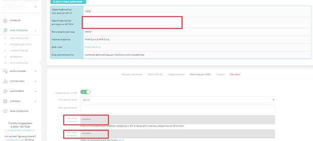 Во вкладке “Мои продажи” -> “Мои магазины” необходимо выбрать нужный магазин и перейти во вкладку “Интеграция (API)”. Отсюда потребуются: 1) Идентификатор магазина 2) API ключ 3) API токен