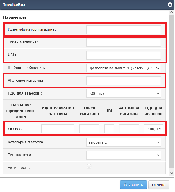 Данные заполняются из Личного кабинета InvoiceBox. Также эти данные указываются ниже в настройках ECVI у Юр лица по которому будут производиться оплаты.
