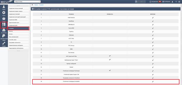 Далее в настройках ECVI необходимо указать какой категорией и типом платежа будут отображаться платежи в счетах по данной интеграции. Вы можете выбрать уже созданные типы и категории, либо запросить создание нового типа и категории платежа у нашей технической поддержки, через запрос на почту support@ecvi.ru.