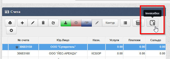 Для формирования платежной ссылки перейдите в лицевой счет гостя и нажмите на кнопку "InvoiceBox", расположенной в левой таблице Счета: