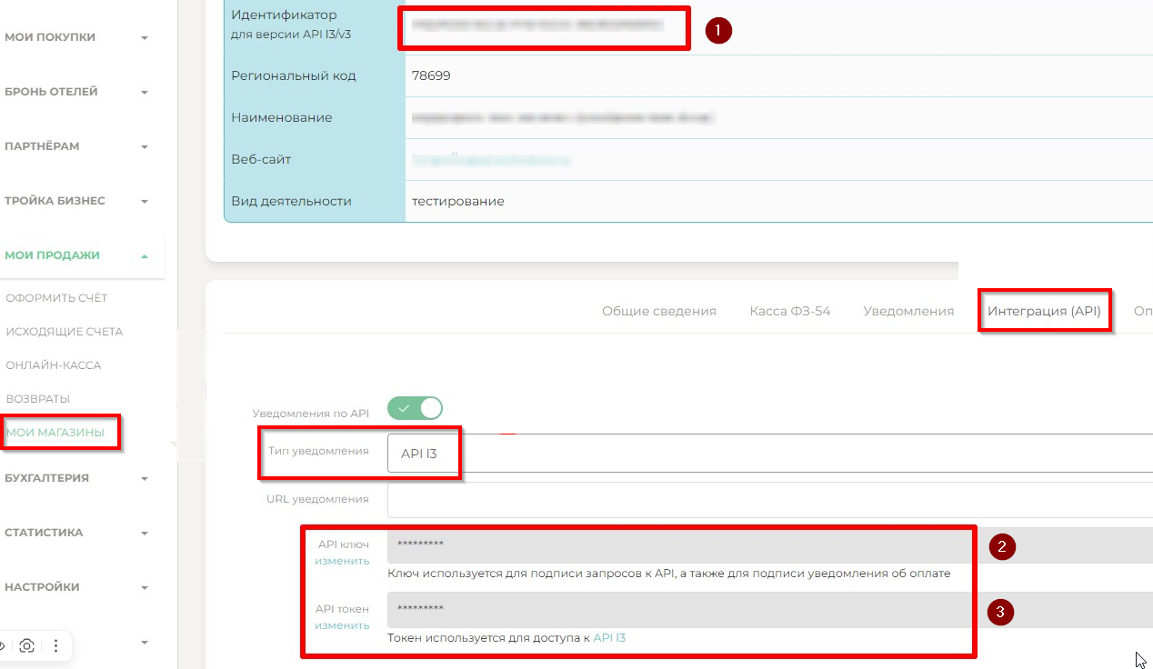 - Идентификатор магазина - в InvoiceBox это Идентификатор для версии API l3/v3