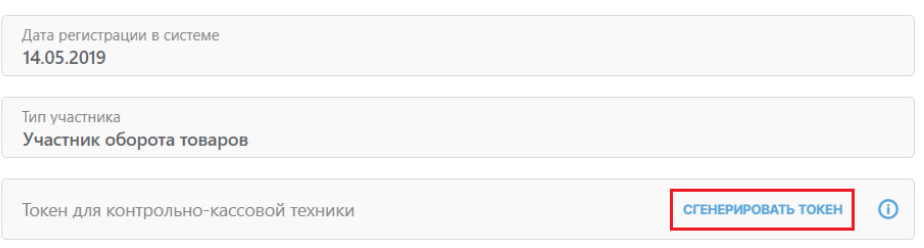 Для работы с маркированным товарами из Ecvi потребуется получить токен из личного кабинета ГИС МТ, для этого следует перейти в раздел Профиль и нажать на кнопку "Сгенерировать токен" в поле "Токен для контрольно-кассовой техники":