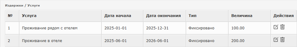 - Тип издержки "Фиксированно" или "Процент" (в текущей версии системы пока что не задействовано)